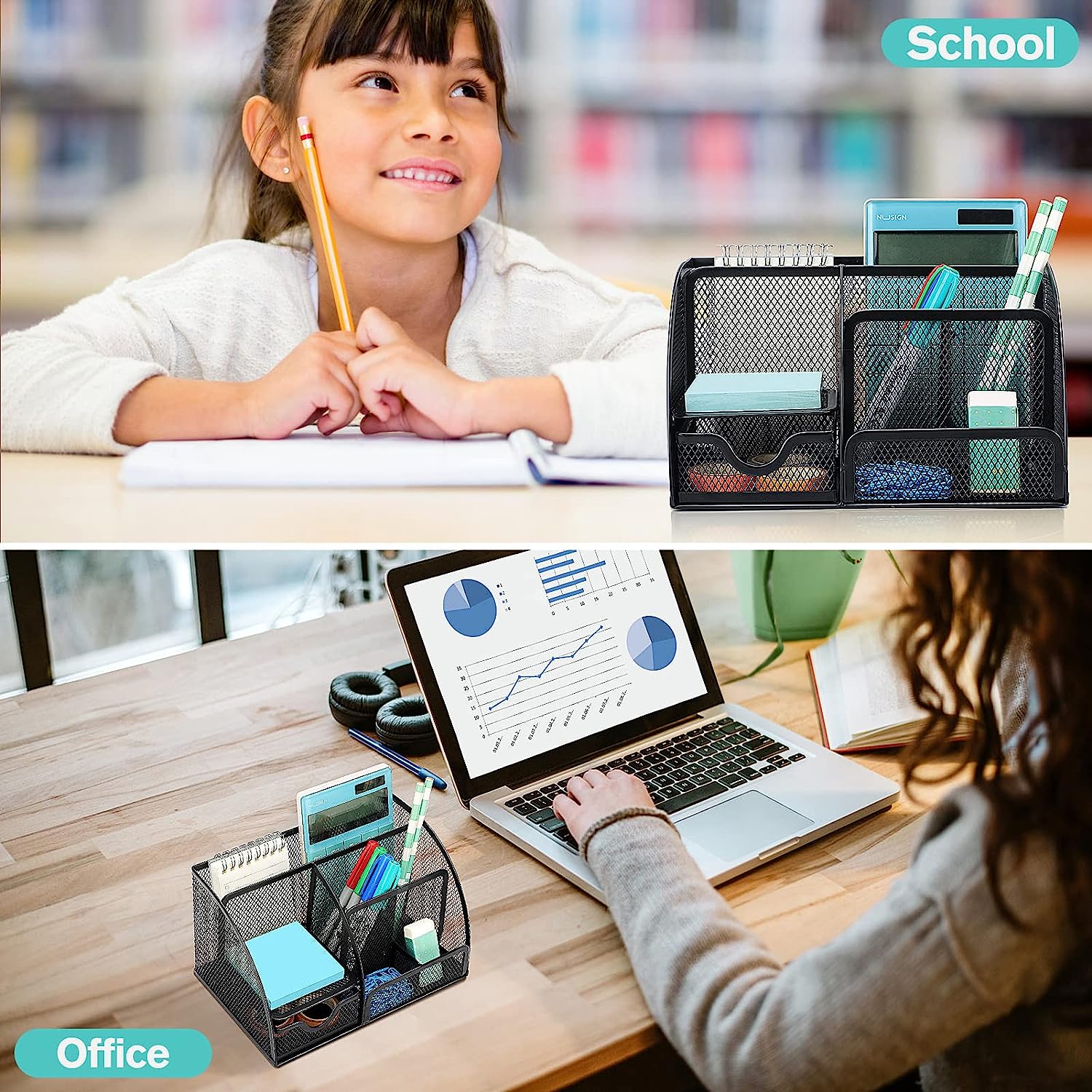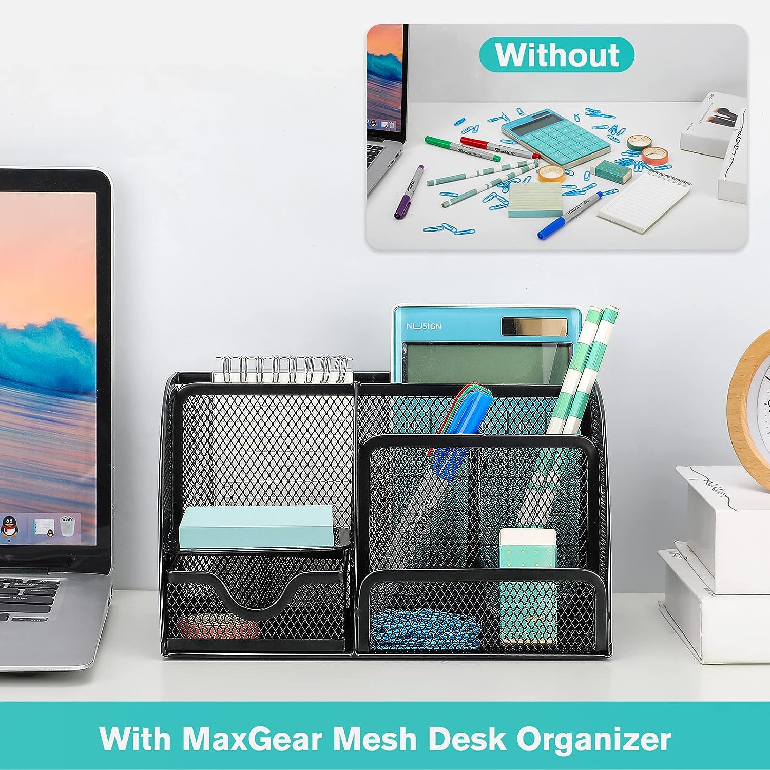 • Measure: Mesh desk organizer size: 8.7 x 5.5 x 5 inch, it is easy to put away and store.